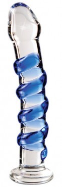 Dildo de cristal de la gama Icicles, hecho a mano, elegante y exclusivo con el máximo cuidado en todos los detalles. Éste, el número 5, soplado a mano, con un diseño único, forma muy estimulante, con cabeza ligeramente más gruesa y relieves en azul por todo el cuerpo. Dispone de una pequeña base para un mejor manejo y uso anal. El cristal es un material nada poroso, hipoalergénico y totalmente seguro para el cuerpo. Diseñado para durar toda la vida con un mínimo cuidado y mantenimiento. Su limpieza es extremadamente fácil, bastará un poco de agua tibia o introducirlo directamente en el lavavajillas. El cristal admite ser enfriado con agua fría o en el frigorífico o calentado con agua caliente o directamente en el microondas, según te apetezca un tipo de sensación u otra.