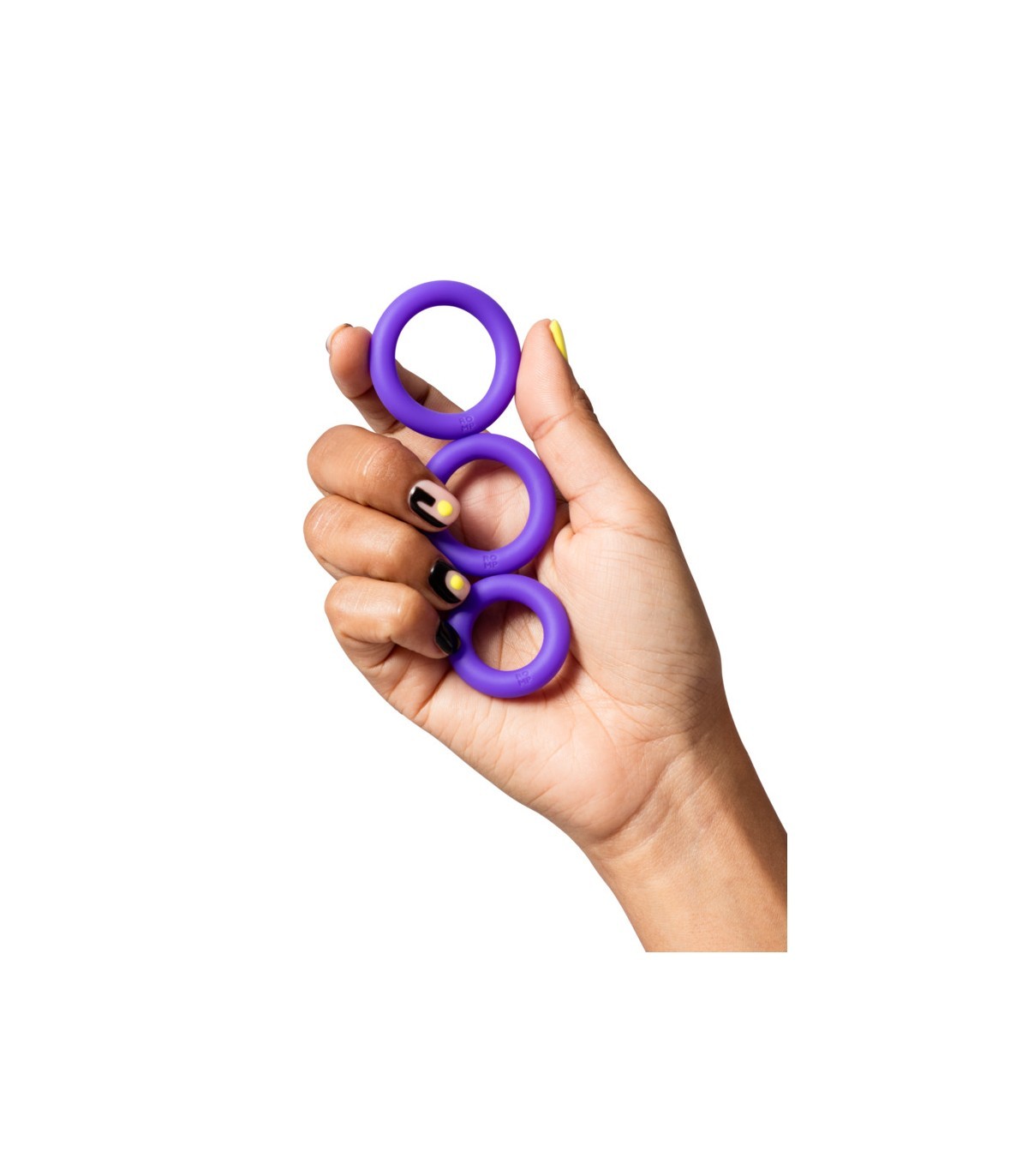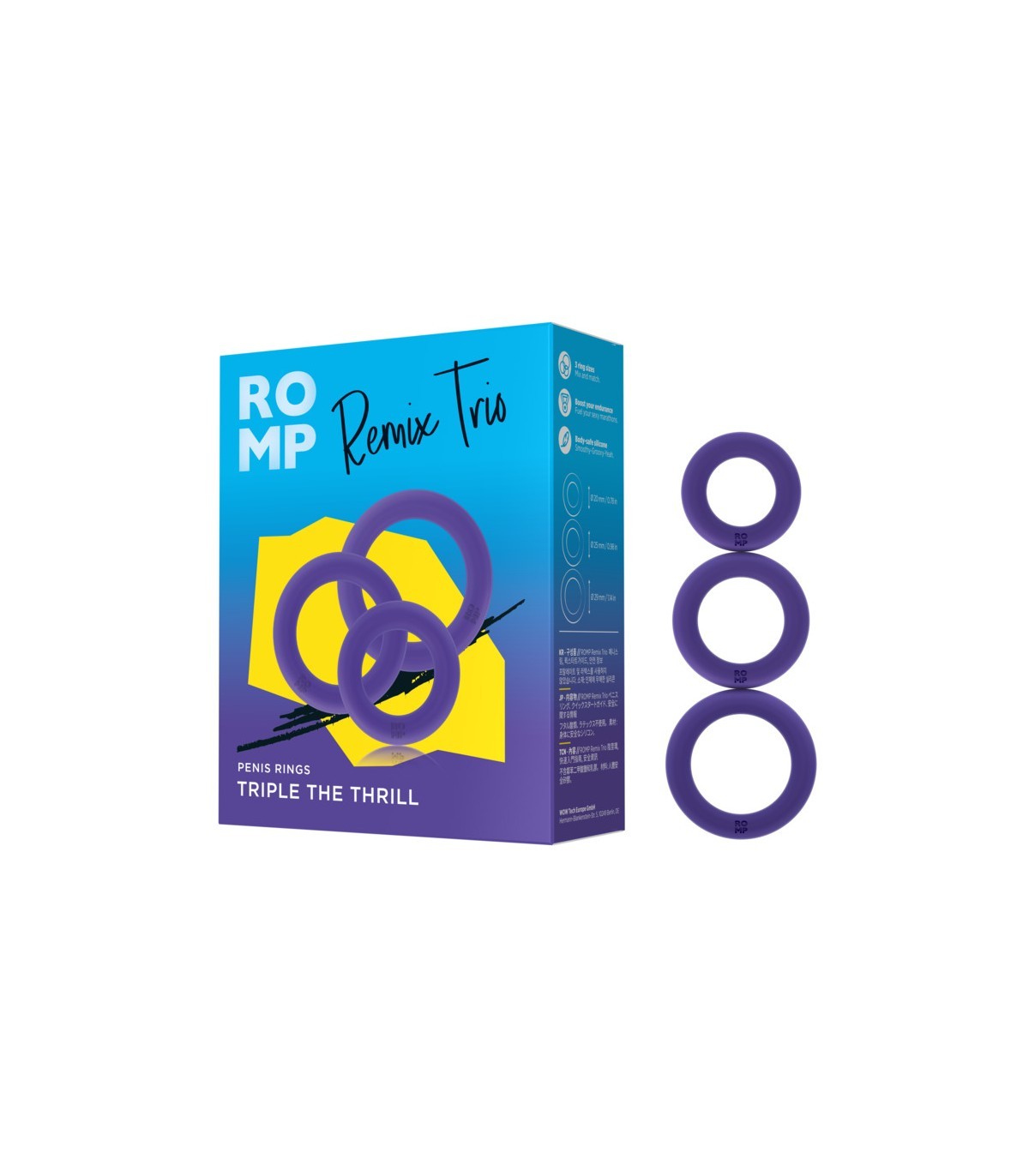 Set 3 de tres anillas realizadas en silicona para el pene/testículos de la marca Romp. Características: