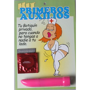 KIT PRIMEROS AUXILIOS Tu Botiquín privado, para cuando no tengas a nadie a tu lado.Divertido kit compuesto por un preservativo de sabor y un mini vibrador de 11 cm de color rosa.
