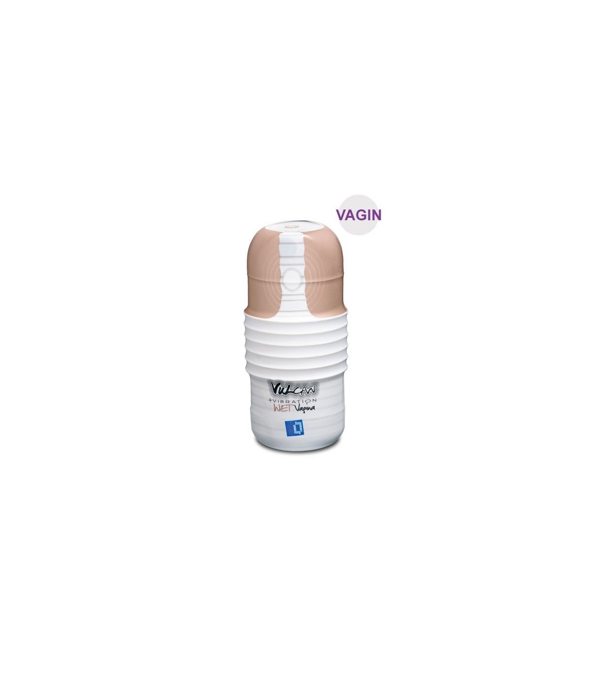 Masturbador realístico con forma de vagina reutilizable y con vibrador con 6 modos de vibración diferentes. Se puede extraer la manga para su limpieza.