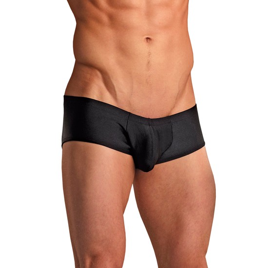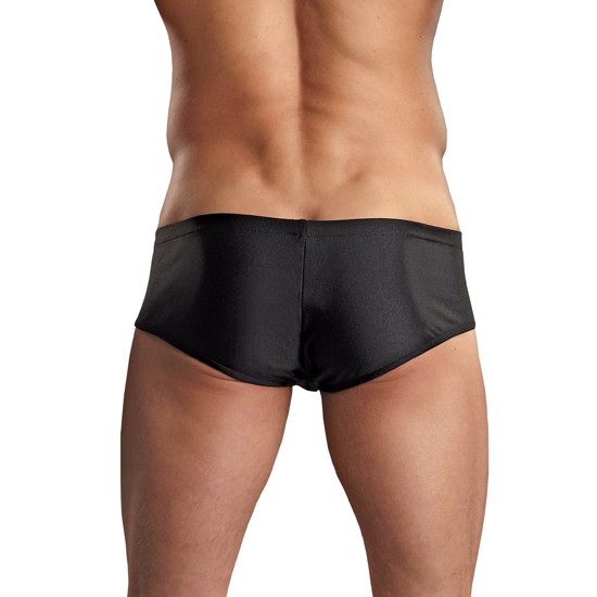 Micro mini boxer de color negro. La cintura es ancha y elástica para acomodarse a tu cuerpo. Escoge el que más te guste y sorprende a tu pareja.