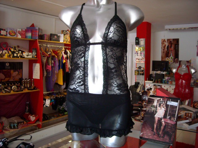 Vestido negro de licra con encaje tipo trikini muy elástico y ajustable al cuerpo. Vestido negro con encaje y espalda al descubierto con tiras en espalda que se ajusta a cualquier talla. Es talla única.