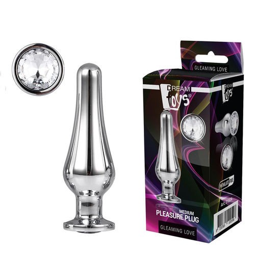 Plug anal realizado en aluminio y con joya transparente. Tamaño M: 8’3cm X 3’4cm.