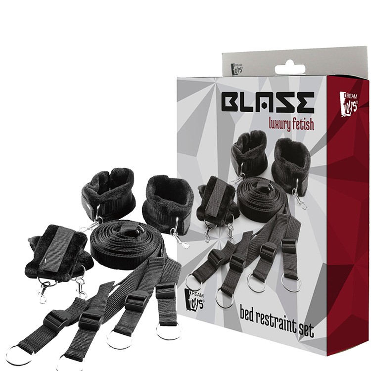 Conjunto de retención de la cama con puños y tobillo. Deslice las correas debajo del colchón de arriba y abajo y a los lados, según su juego de esclavitud. Los puños están hechos de un material suave y ajustables con velcro.