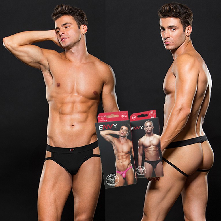 SLip tipo jock con tiras traseras para elevar, de color negro y de microfibra. Opaco sin transparencias.